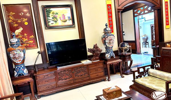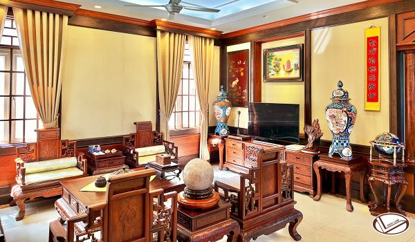 Bên cạnh công năng chính là tiếp khách hoặc nơi quay quần của gia đình thì nội thất phòng khách gỗ mỹ nghệ và các vật dụng liên quan còn thể hiện giá trị riêng của gia chủ.