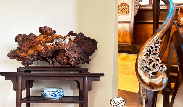 Gỗ mỹ nghệ có màu tự nhiên trầm ấm, phù hợp với phong thủy phương Đông, mang đến nhiều may mắn cho gia đình
