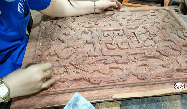Công đoạn chế tác hoa văn gỗ mỹ nghệ được xử lý thủ công