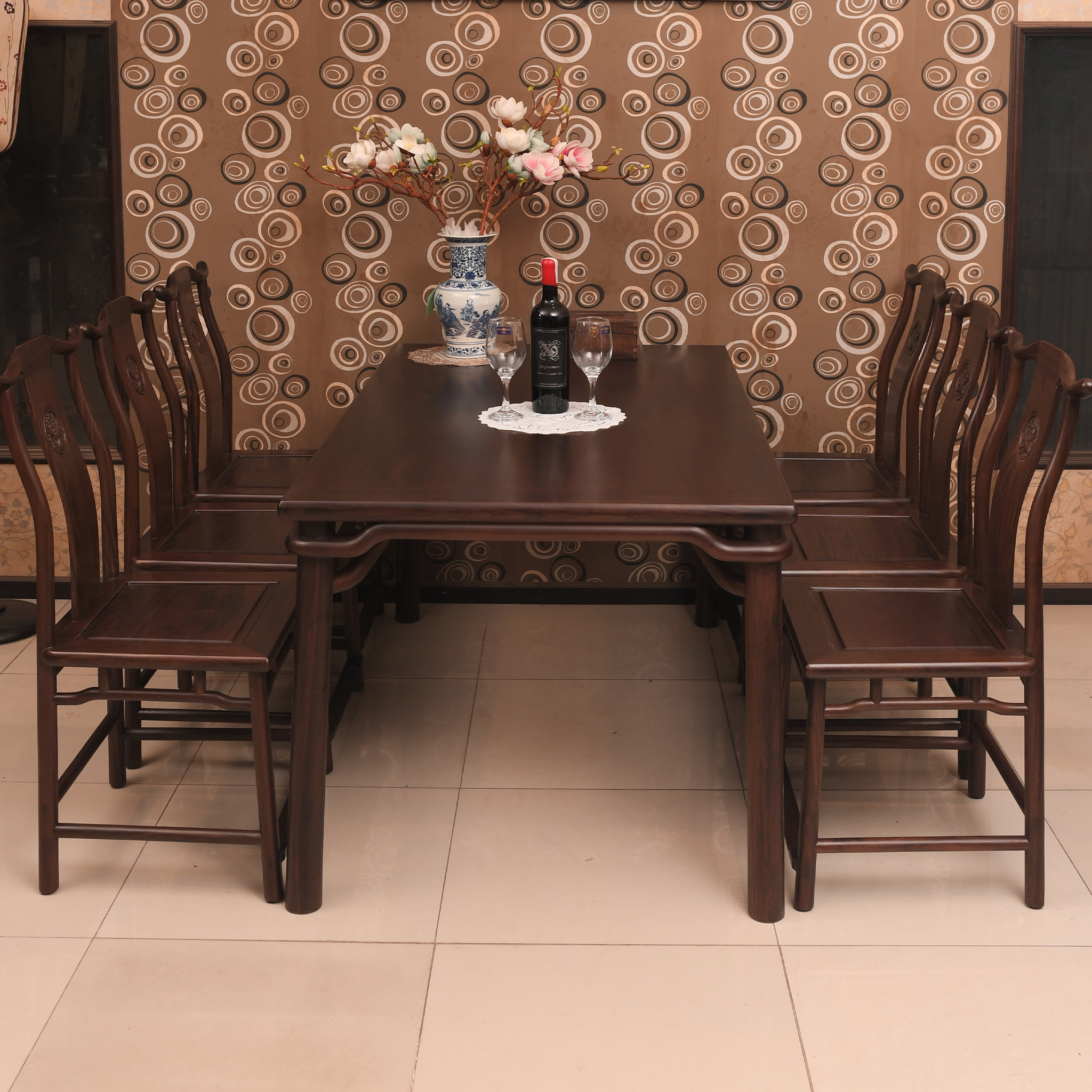 - Bộ bàn ăn chân tròn có thiết kế đơn giản nhưng đẹp và thanh lịch. Sản phẩm được làm từ gỗ quý tự nhiên cho độ bền vượt trội hơn hẳn các loại gỗ thông thường. Màu sắc trầm ấm và chất liệu mộc rất hợp với phong thủy phương Đông. Mang đến sự thịnh vượng và tài khí cho gia chủ.